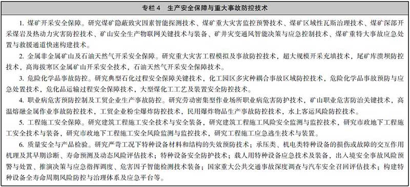 3.发展生产安全保障与重大事故防控技术。