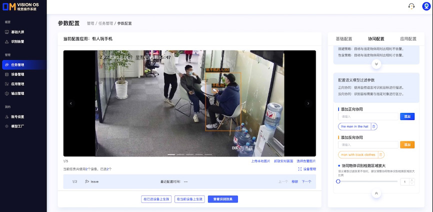 3.协同调优提升AI算法精度,首创算法协同调优运行机制,可在算法应用执行前、中、后三个阶段进行干预,执行前规范算法应用执行要求,执行中针对每个告警执行校验,执行后优化每路视频误报难点,并结合人工反馈+AI自主学习,时刻提升精度。